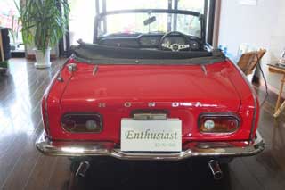 | ホンダのSシリーズの極めつけモデル、通称エスハチです。 ご紹介致しますエスハチは66年式、初期型のみに存在したチェーン駆動モデルです。現オーナーさんは平成19年10月に購入され、その後手を入れながらコンディションを維持しています。 状態はほぼオリジナルです。特別なモディファイは見たところ加わっておりません。 外装からサビなど傷みは認めませんでした。塗装は過去に元色で全塗装を行っているそうです。トランクヒンジの2箇所にクラックがありましたが、それ以外にキズや退色などは見られませんでした。 幌も機能に問題ありません。状態も傷んでいる状態にはありません。スクリーンも張替えているそうです。 下回りはシャーシブラックにて防錆処理をしています。 内装も傷みは見られません。特に手を入れてはいませんが、問題個所は認めませんでした。シートも破れはなく、ダッシュも傷みはなし、内張りなどもそれぞれ良好です。 機関は問題ないそうです。ただ、取材時には車検切れのため、始動や走行はなっていません。現オーナーさん所有時には、トラブルはなかったようで、記録簿を見ても修理の履歴はありませんでした。尚、記録簿は現オーナーさんのもののみあります。 車検は平成21年10月で切れています。 現オーナーさんに事故・修復歴はありません。 手を入れたもののほとんど乗る機会がなく、車検を切らせてからは保管している状態です。雰囲気を楽しむのもよいですが、やはりエスハチは走りを楽しむクルマでありましょう。是非元気に走らせて頂ける方を求めています。 実車は東京都青梅市にあります。 |