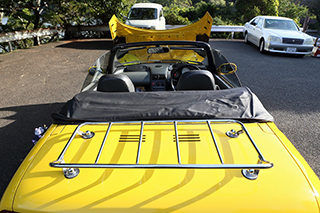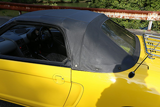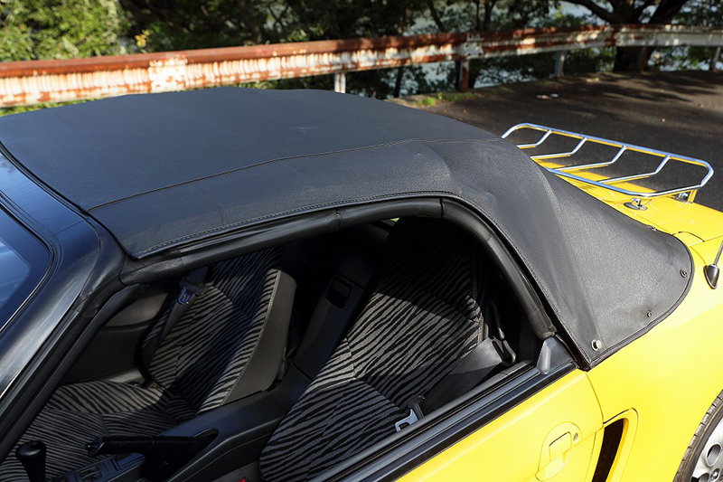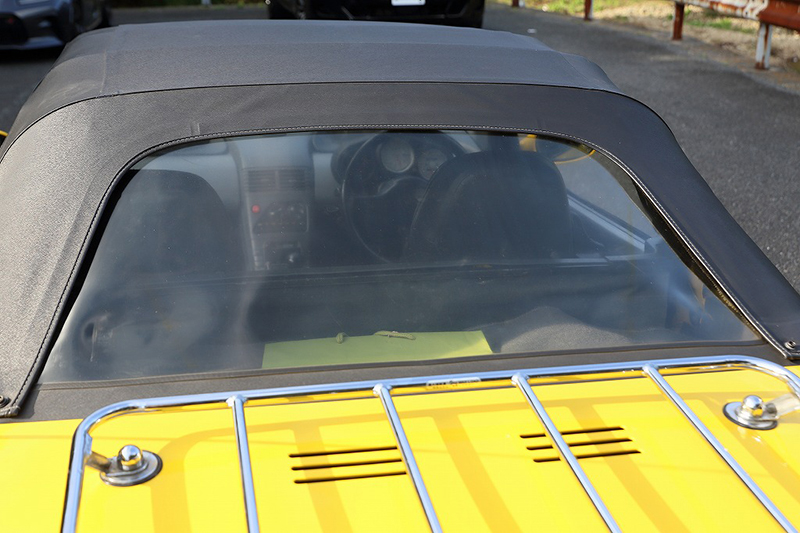 幌の状態もとても良く、経年による縮みがほとんど無く、ステッチの切れも無く、リアスクリーンも透明度を保っています。トランクキャリアも錆は無く綺麗。