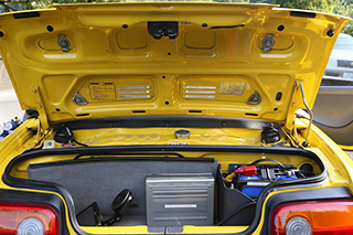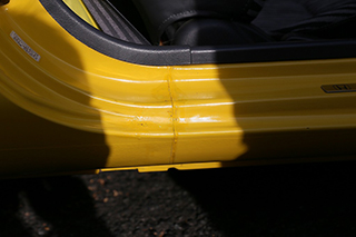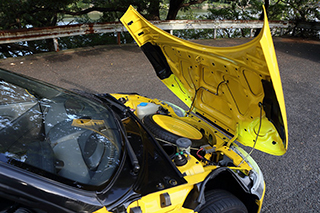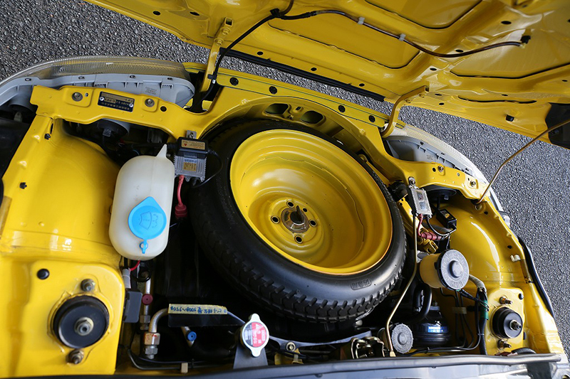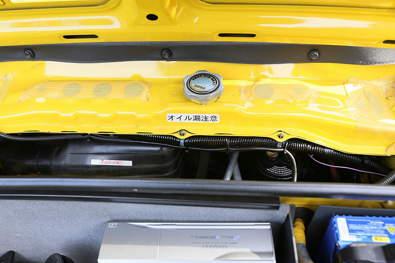 フロントのスペアタイヤ周辺や下回り、ビートの弱点であるサイドシルにも錆は出ていません。ただ、サイドシルの繋ぎ目にタッチアップ跡があるためオーナーがファイバースコープでボディ内を撮影した動画を見せていただきましたが、はっきりとした錆はわかりませんでした。