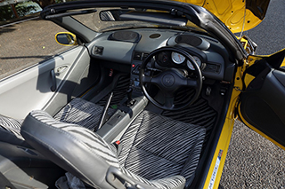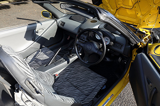 内装についても極上レベルと言っても良く、日焼けによる劣化がほとんど無く、ダッシュボードやドア内張り等も色褪せが診られません。また、シートの状態も良く、ビートでは定番の運転席外側の腰のサイドサポート部分の破れもありません。ウエザーストリップなども綺麗な状態でした。