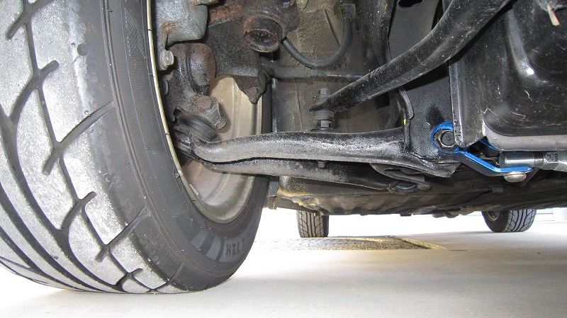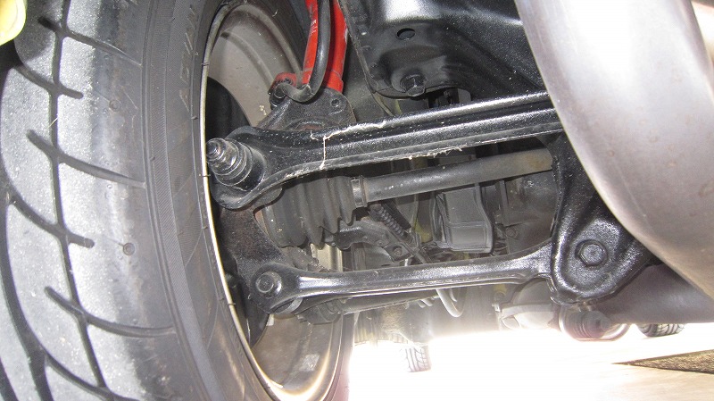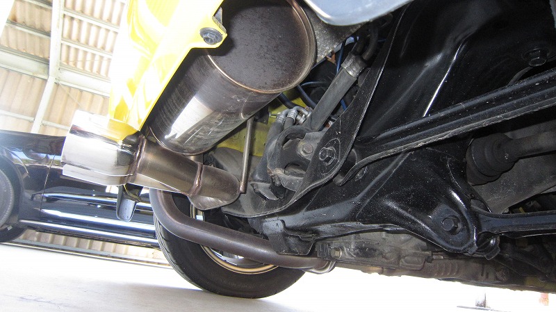 レイズのTE37前13インチ/後14インチアルミホイール、タイヤはアドバン ネオバ AD07 165/60-13 175/60-14(2013年製造ですが、クラックもなく新品にしか見えません。)ハーフウェイの希少なセンターマフラー以外はフルノーマルです。