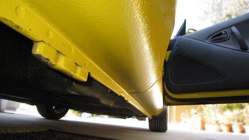 ジャッキアップポイント、牽引フックに擦り傷や錆は見受けられますが、それ以外は錆はもとより擦り傷や飛び石など見受けられず、幌にも新車の時のヘアライン状の模様まで残っています。