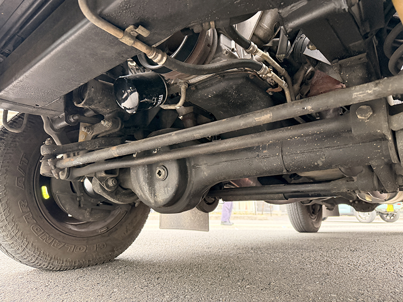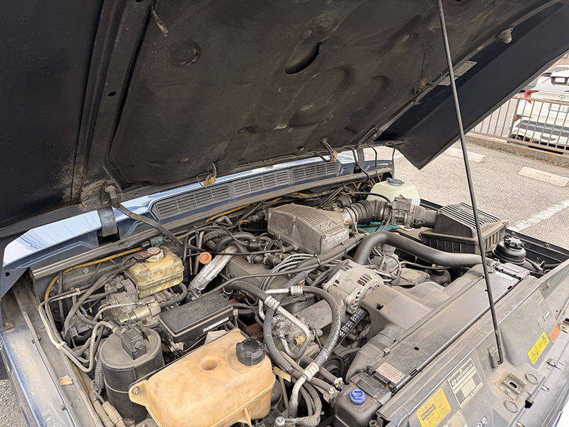 グリルや樹脂、ゴムパーツに経年劣化はありますが、やれた鉄ちんホイールとヒッチも合わさってトータル的にバランス良い雰囲気を出しています。