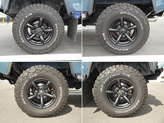 ホイールはマットブラックに塗られた16インチホイール、タイヤはBFグッドリッチのオールテレーン、サイズはLT235/85R16です。