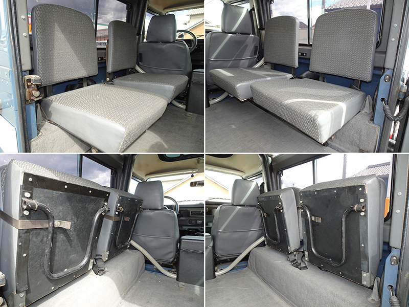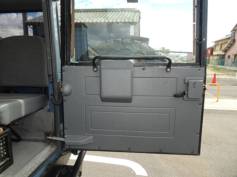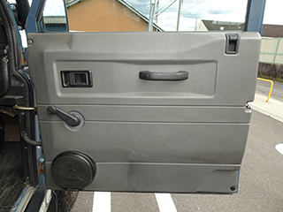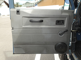 前オーナーさんの時代にリヤドアはスペアタイヤの取り付け部分が錆びて腐ってしまったため、ドア毎交換、その際にマットブラックに塗装しています。また、同時にボンネットも同色に塗装したそうです。