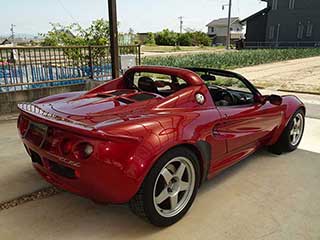 現オーナーさん、スズキのカプチーノに乗っておられ、パワーに限界を感じ、ロータスエリーゼに乗り換えられます。思っていたとおりのライトウェイトのスポーツカー、乗り味、エンジンパワー、スタイリング、どれも満足にいくものだったそうです。