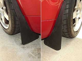 飛び石によるキズがリヤフェンダーにあったため、ストーンガードを新たに貼り付けています。また、飛び石の原因となるフロントタイヤの石の飛び跳ねを自作のストーンガードを取り付けて防いでいます。