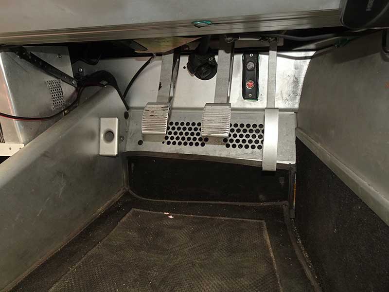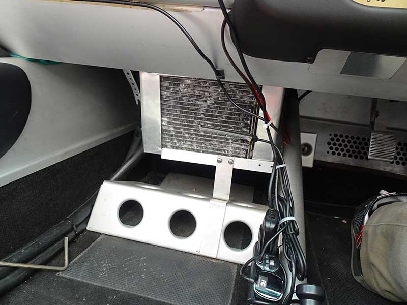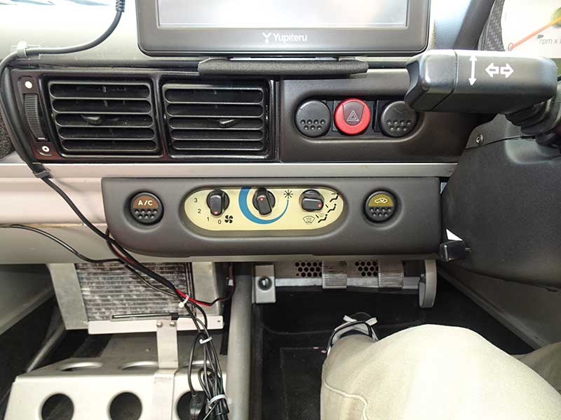 エアコンを装備、ヒーターは大型のコアに変更し、助手席に設置しています。