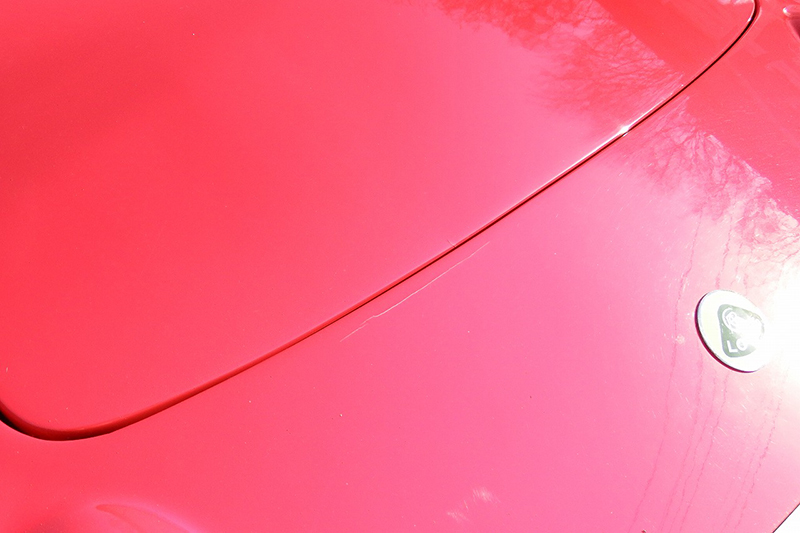 エンジンフードの開閉は問題有りませんが、開閉時に少し歪むため、左右に擦った跡があります。