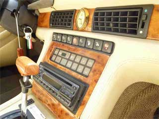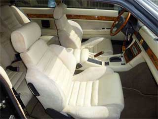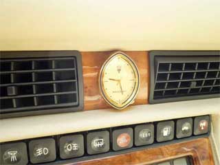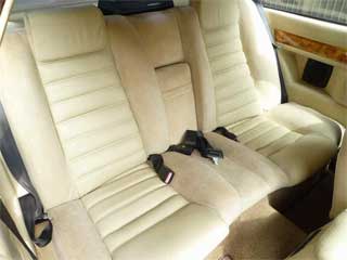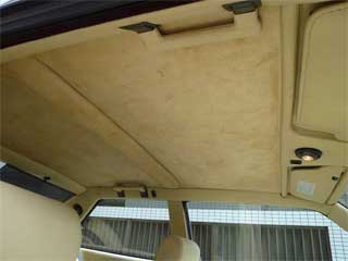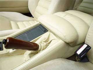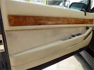 内装はこれぞマセラティと呼べる豪華な仕様です。 本革とアルカンターラのコンビのシートは、こちらも取り立てて傷みのない状態です。 ウッドパネルもツヤは損なわれておらず、その他内張りやカーペットなどもキレイでした。 唯一の傷みと呼べるのは、天井に垂れが生じている点ですが、頭に着いてしまうような事にはなっておりません。