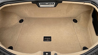 ベージュの折りたたみマット下にはバッテリー、高さが約10センチほど有り車検証なども収納出来る |