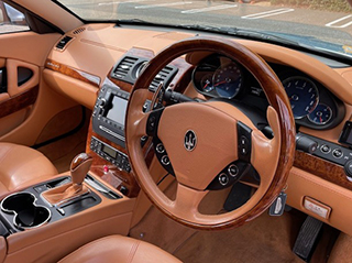 ステアリングはマセラティ伝統の上質なウッドとレザーのコンビ、パドルシフト付 |