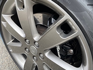 マセはブレーキにも抜かりなし。マセ特注のブレンボ6ポットにドリルドローター(フロント左右)ホイール3本は画像ような状態で綺麗です。 |