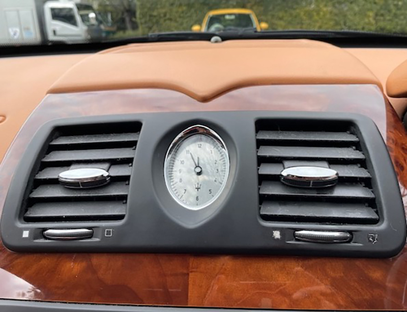時代は変われど、このアナログ時計がマセラティを印象づける |