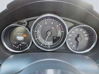 吸気側から見るエンジンルーム、吸気カバーはSKYACTIV-Gのロゴが入っていてインパクトあります。エンジンルームのウェザーストリップきれいです。 |