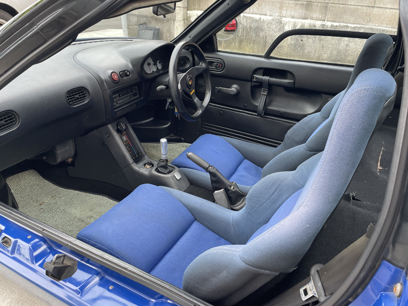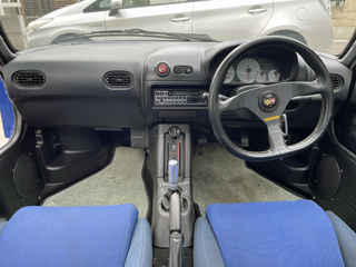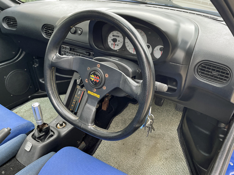 大きくカスタマイズされていないのがポイントです。変更点はステアリング(momo製)とシフトノブくらいでしょうか。