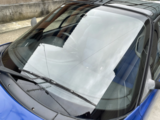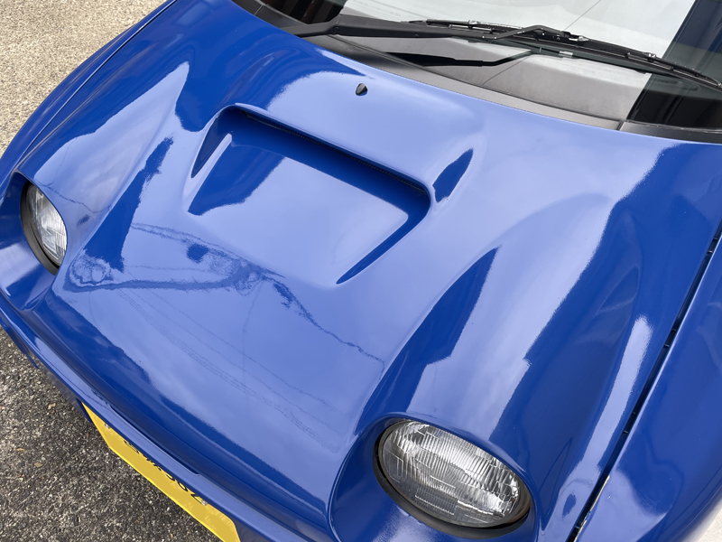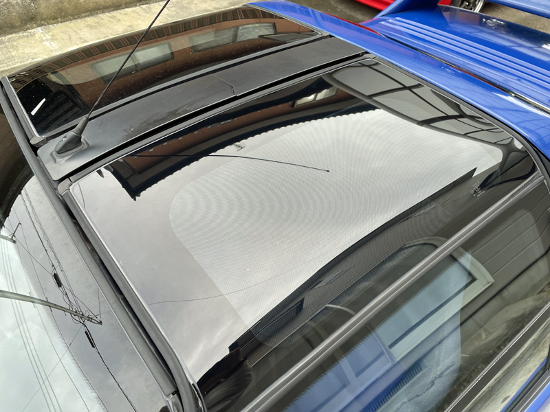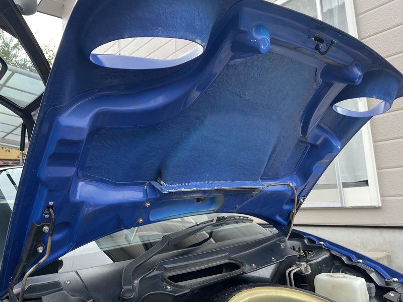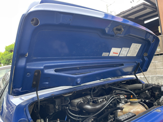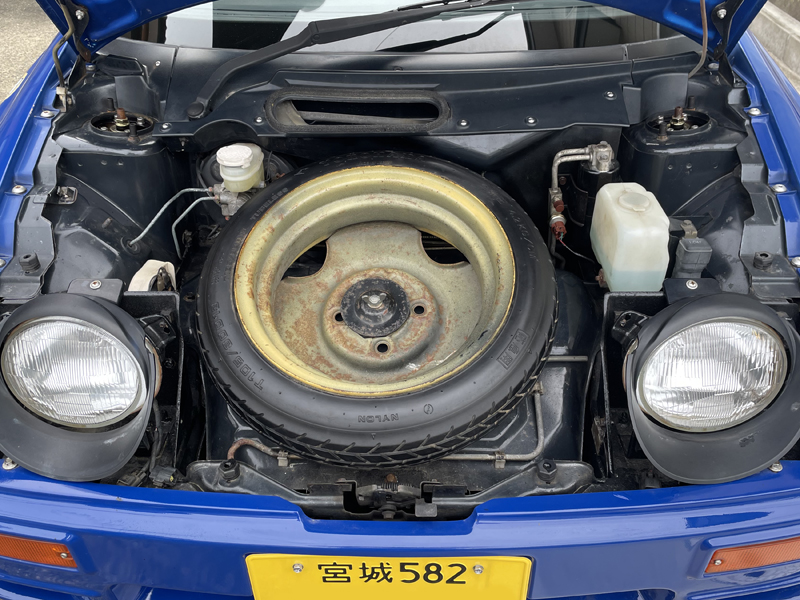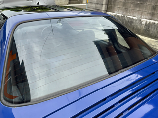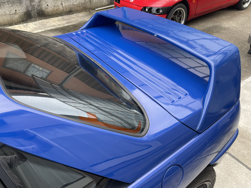 外観をぐるっと一周してみて目立つような傷やヘコミは見当りませんが、塗装につきましては、右フロントフェンダー上部に塗装剥げ(10cm×4cm、補修途中)、リアトランク上面などに多少の色褪せを確認しました。見学時にじっくりとご確認ください。