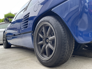 車高調(ナビック製)が組み込まれたサスペンションは、ノーマル車高より若干ローダウウンさせてあります。