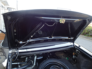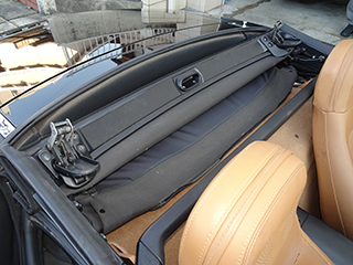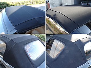 幌はブラックカラーのキャンバス地、リヤスクリーンは熱線入りのガラス製です。