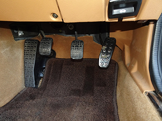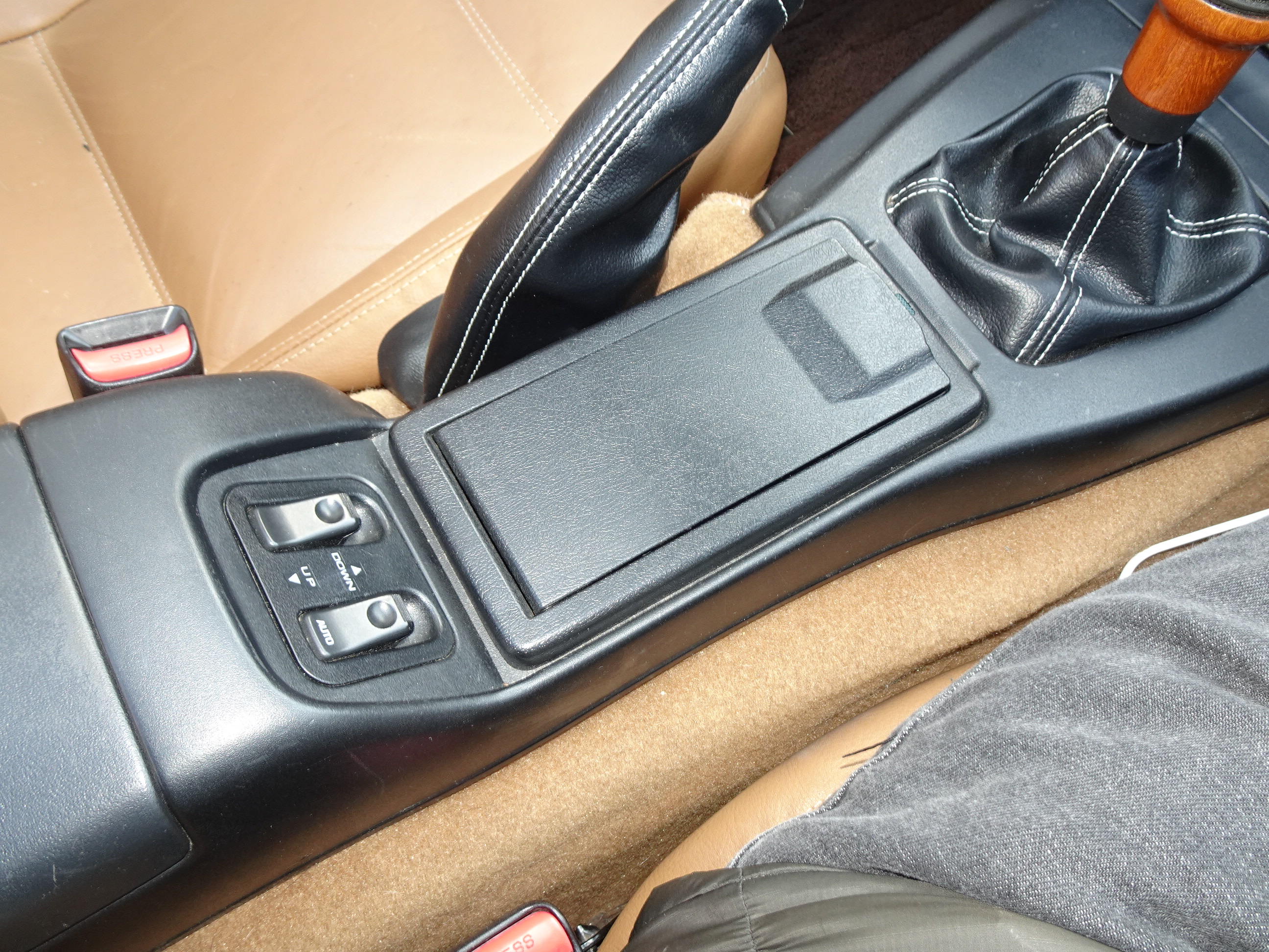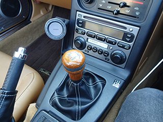 パーキングブレーキレバーは本来ウッド製ですがブラックの革仕様となっています。