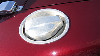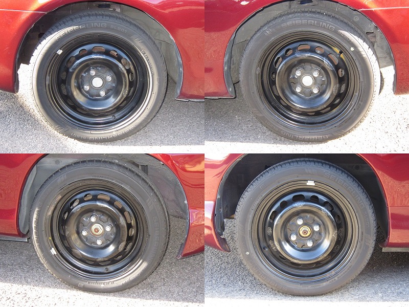 購入後ブラック塗装の鉄チンホイール、クラシカルなヒューエルキャップに交換されています。(純正ヒューエルリッドありますが一部塗装剥げています)