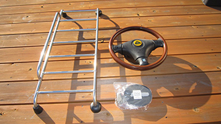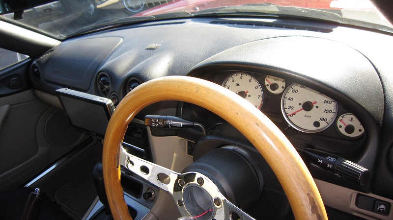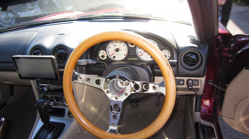 装着しているウッドのステアリングはホーンボタンが欠品中ですが、純正のウッドステアリング(補修テープが巻かれています)がございます。