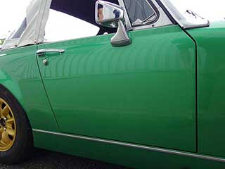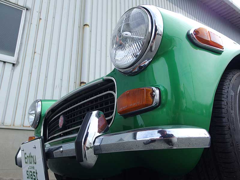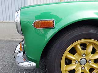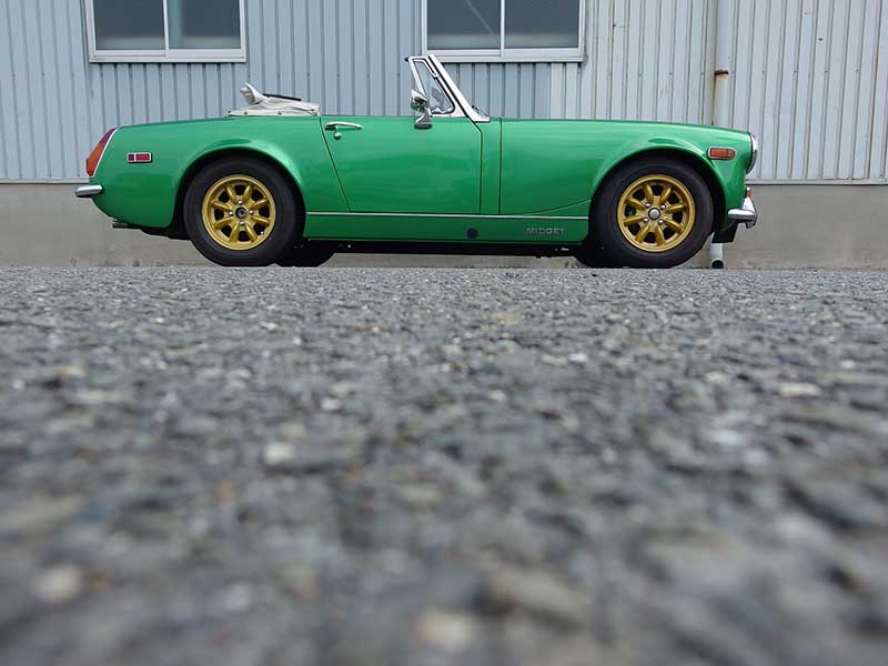 ■ 概要 このMGミジェットは1275ccのAタイプエンジンを積んだ最終型のマーク4。ディーラーで正規輸入されたミジェットにワイヤーホイールのスピンナーをカバーするためにオーバーフェンダー化された40台の内の1台がこの車です。 キャブレターはSUツインキャブからシングルウェーバー45DOCEに変更されていたものを、現オーナー様がアイドリング、低速トルク重視で40DCOEに変更されています。しかし燃調を煮詰めておられませんので、プラグの焼け具合がイマイチとのこと。これは「次のオーナー様にキャブレターのセッティング調整の楽しみを譲ろうと思います。」ということでした。 英国車が得意なショップに車検、整備をお願いされて維持に努められています。この10年は雨濡れや水による洗車もされておられません。これからの季節、存分にオープンで楽しんでもらえると思います。 ガレージ保管で複数台お持ちのオーナー様で、ガレージ整理でのご出品です。 ■ ボディ ・2017年のフルレストア時にグリーンメタリックに全塗装 ■ インテリア ・シートは純正シートで破れやへたりの無い座り心地のよいシートです。 ■ エンジン ・エンジン積み替え(2017年) ■ シャーシ ・4速MT ■ 足回り ・タイヤサイズ 165/70R13(2021年10月製) ■ 付属 ・モトリタ純正ステアリング メンテナンスのために定期的に乗られます。若干距離が延びることがあります。 車両代金のほか、自動車税39,600円の月割り額、リサイクル料10,480円を別途ご負担いただきます。 |