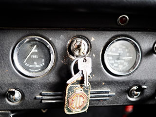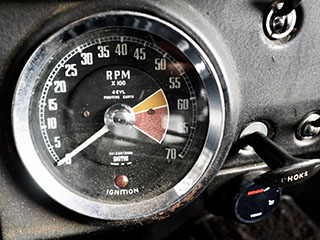 計器類もオリジナルのスミス製、水温は後年デジタル計を装着 |