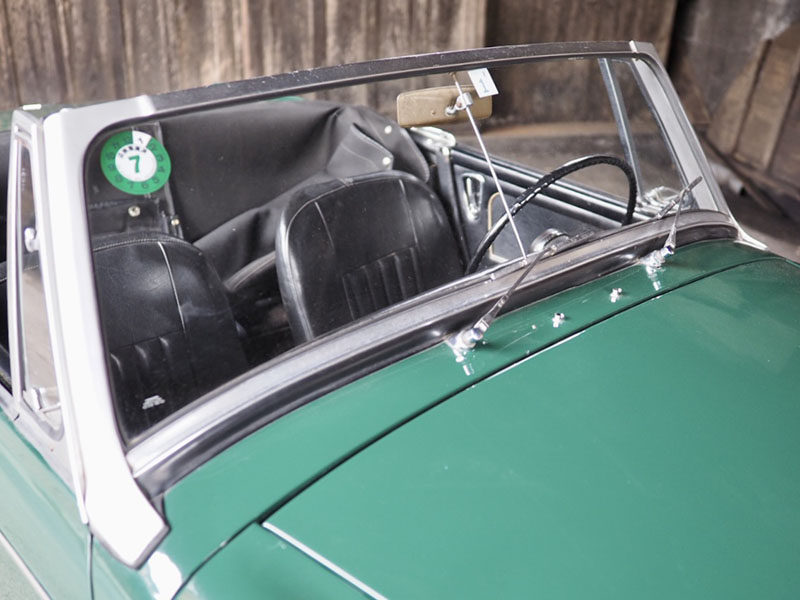 角度がありハイトが低いMGならではのウインドウシールドも状態よし |