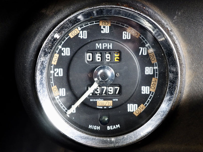 車検対策の為、マイル表示のメーターに綺麗にkm表示がされている |