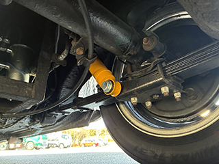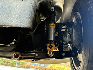 フロントブレーキローターとキャリパーは、大型のものに交換し、フロントセクションのブッシュを強化ブッシュ化してあります。