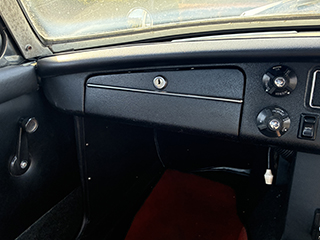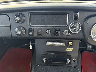 ステアリングはモトリタにMGホーンボタン(希少品) ダッシュボードはシボ加工塗装されていて、オーディオは社外のBluetoothオーディオが装着されています。