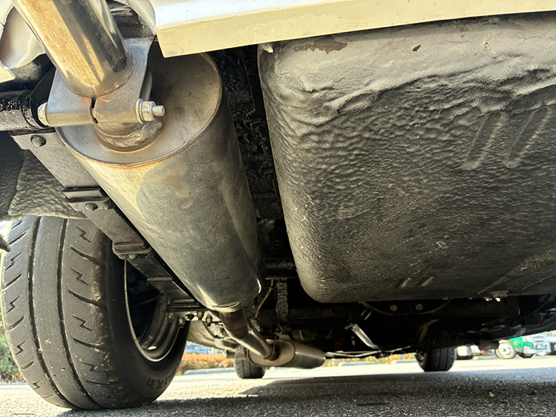 マフラーが車体からはみ出しているので、車検に通らない可能性があります。