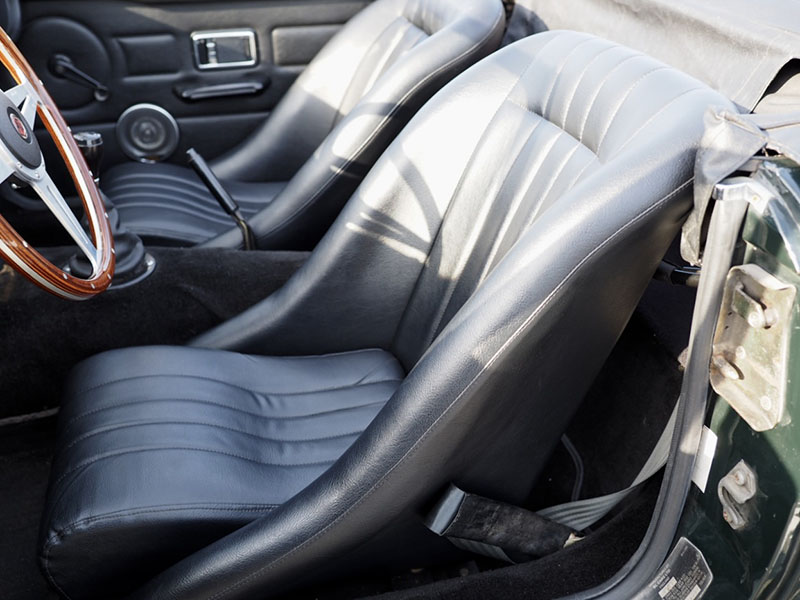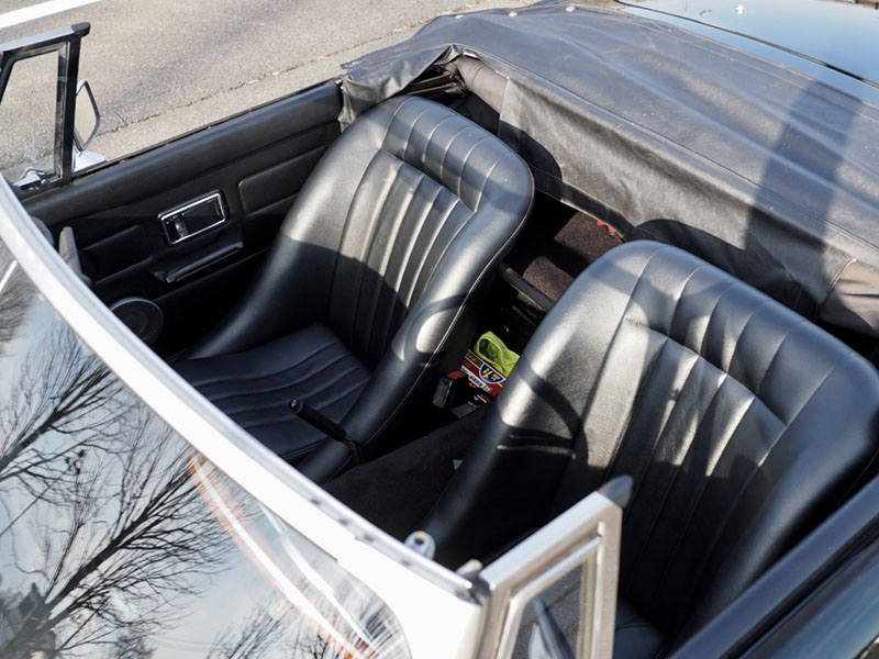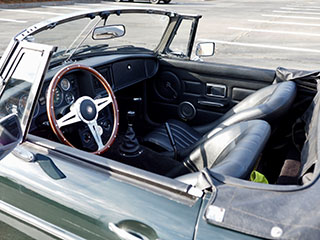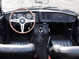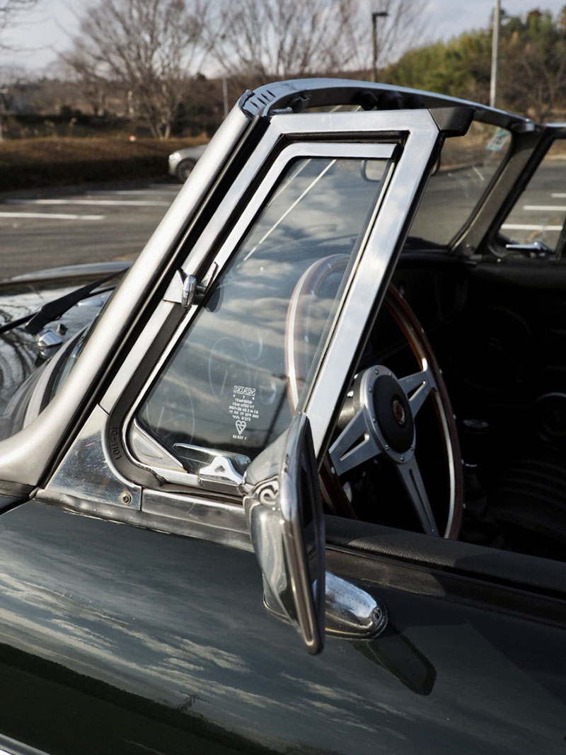 オープン時のコックピット全景とクラシックスポーツカーらしい室内空間 |