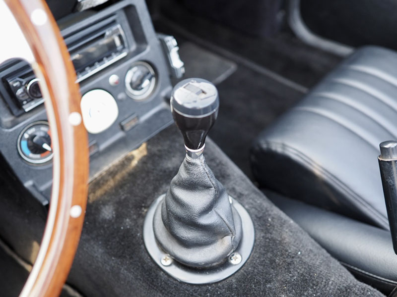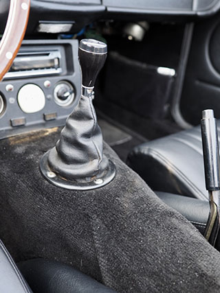 4速マニュアルシフトレバーとレザーブーツ、ここのトレイが外されて雰囲気をあげている |