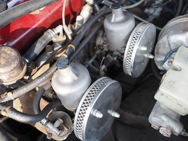 オリジナルSUツイン・キャブレターとエアフィルターまわりの状態良好 |