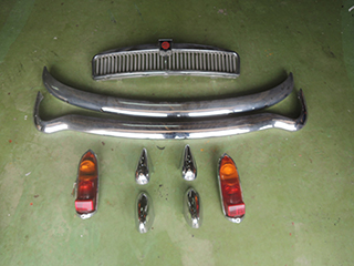 55年経過しておりますので少々目立つタッチペン跡やエクボなど見受けられますが、全体的にきれいな印象です。オーナーさんはオリジナリティを尊重されてますので、消耗品等を交換するにあたっては可能な限り純正部品を使用し、部品が無くてもオリジナルを損ねないように気を配ってパーツ類の選択をされてきました。