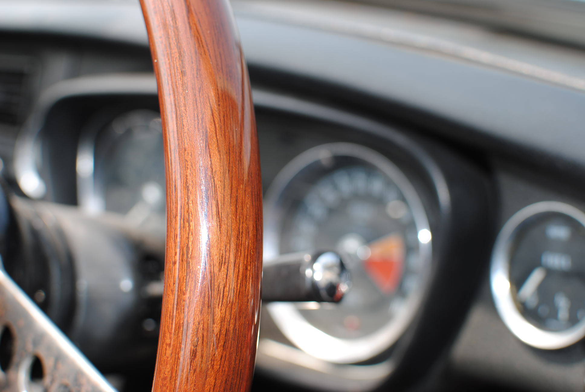 ステアリングは、本来グリップ部分がレザーでしたが、劣化していたためその部分のみウッドに交換されております。英国クラシックカーですから、むしろこちらのほうがオリジナルっぽいですね。