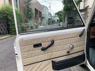 オシャレで可愛いらしい内装は十分に清潔感もあり、シートの破れや目立った汚れも見当たりません。ダッシュ、ウッド、天井の状態も年式を感じさせない状態でした。しいてネガの部分をあげるとすれば樹脂スイッチの白濁位でしょうか。社外品としてはカーステレオは1DINのケンウッドの物が取り付けされております。その他ではETCも装着されておりました。