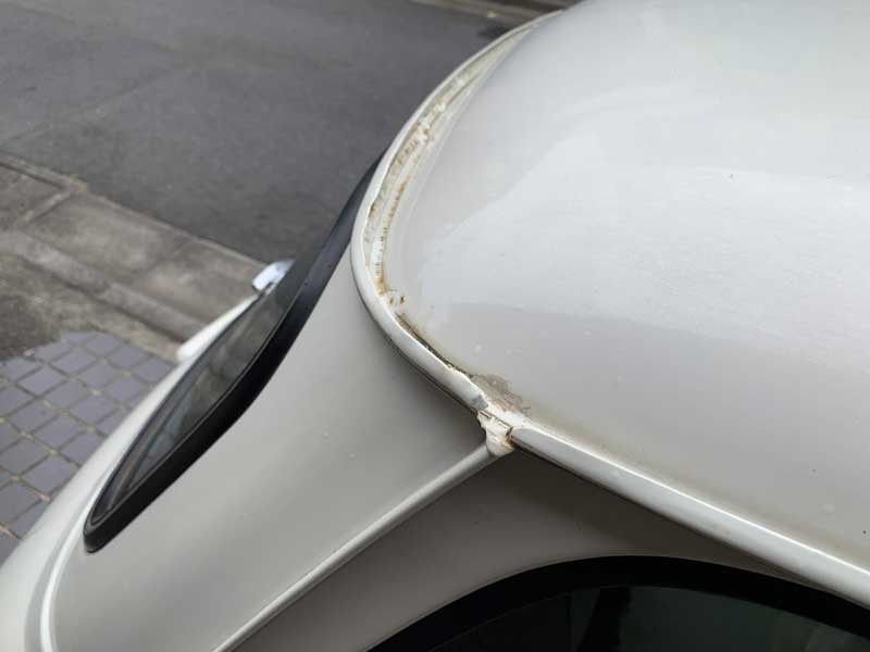 抹消しておりましたので、暫くの間ボディカバーをかけて保管しておりました。取材時はボディカバーを外してだけで清掃等もせずに撮影をした為に画像が若干くすんで見えたりしているかと思いますが、塗装などを含めボディは十分に良い状態だと思います。ライトや樹脂レンズの状態も良いですが、フォグの一つに飛び石と見られる欠けがありました。その他のメッキ部分についてもサビの発生も無くて綺麗でした。