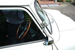 MINIのお約束として、ドアの下部に小さなサビの浮きが見られます。現オーナー様は、キャブレターモデルなので、雨の日は一切乗車せずカバーを使用。