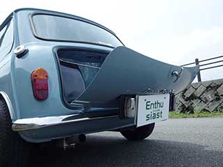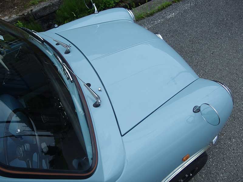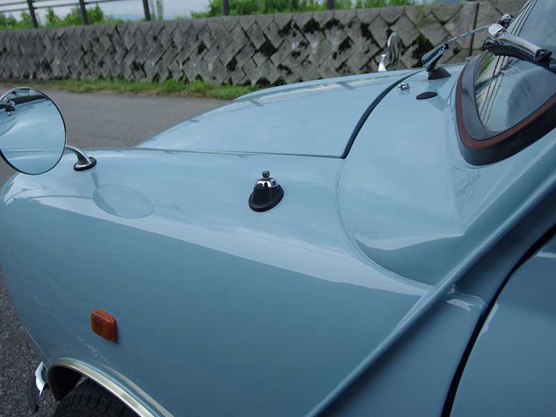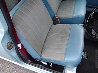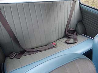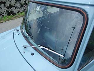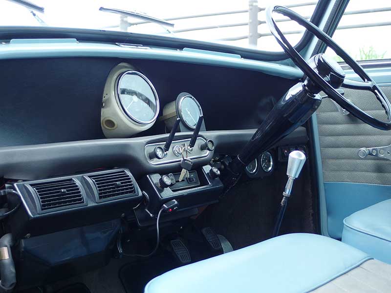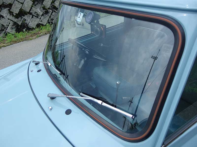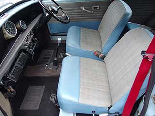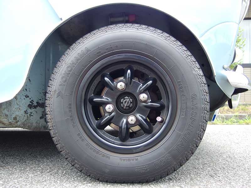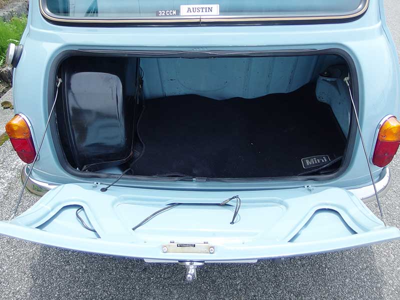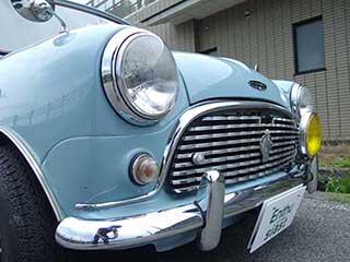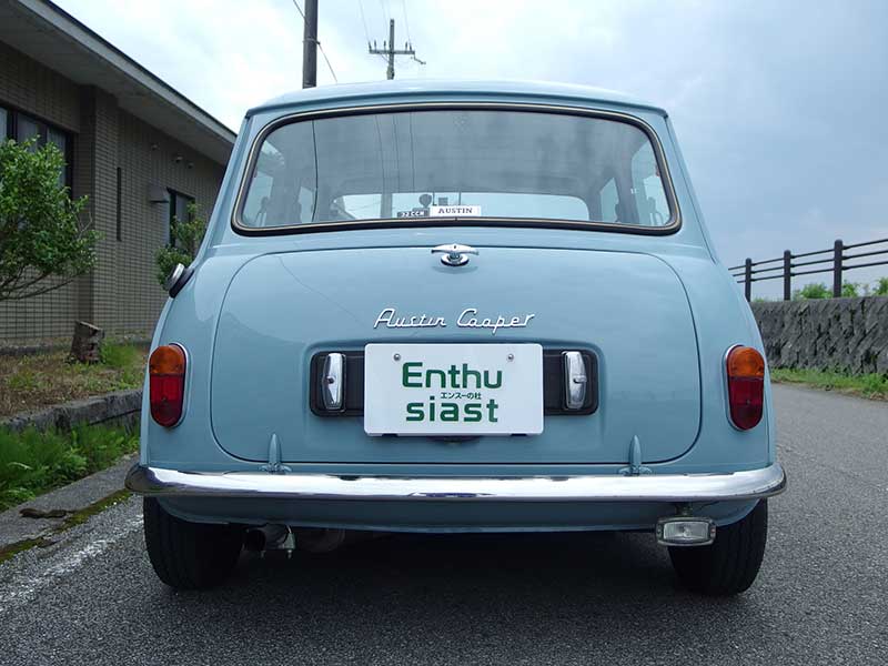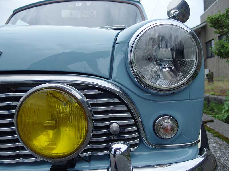 ペールブルーのボディにベージュとブルーのインテリア。シートベルトの赤色が差し色になってミニのMk−1仕様の中でも、かなりセンス良くまとまった一台です。SUツインキャブの1000ccエンジンは実用域での扱いやすさもあり、普段乗りのメインにできるクラシックミニ。見るだけ乗るだけで毎日笑顔になるパートナーになり得る車です。