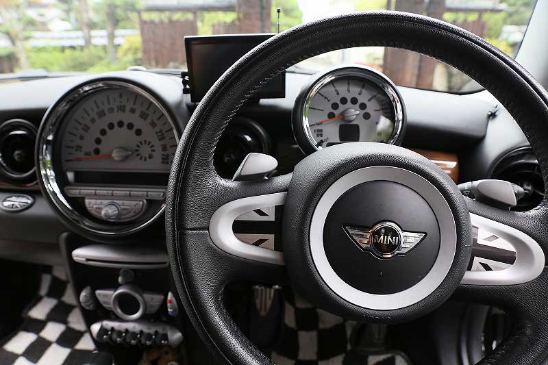 内装はさすがBMW製、所々のメッキの輝きも含めて質感が高くスポーティで高級感があります。クラシックミニを踏襲したセンターメーターもこの車がミニだということを意識させられ、この先も飽きがこないデザインだと思います。