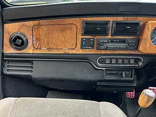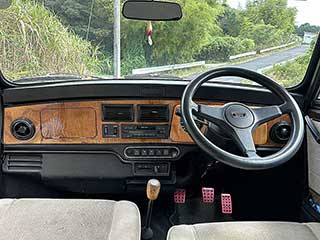 木目パネルのダッシュボードと3連メーターが並び、メカニカルな中にも温かみを感じさせます。