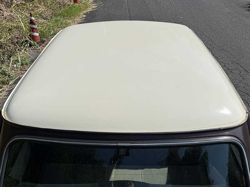 ルーフのホワイトとのコントラストは、クラシックミニのメジャーな組み合わせになります。