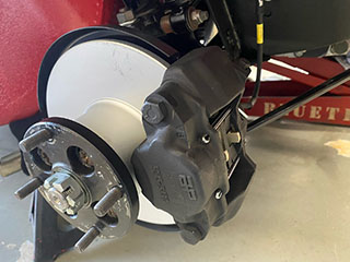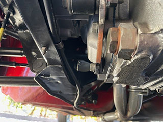 フロントキャリパー、ディスクは共にディクセル。ホースはノーマル然に黒で被覆されているステンメッシュのグッドリッジと抜かりなし |