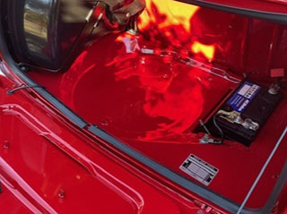 ボンネット裏、見えない所も抜かりなく綺麗に塗装されている |