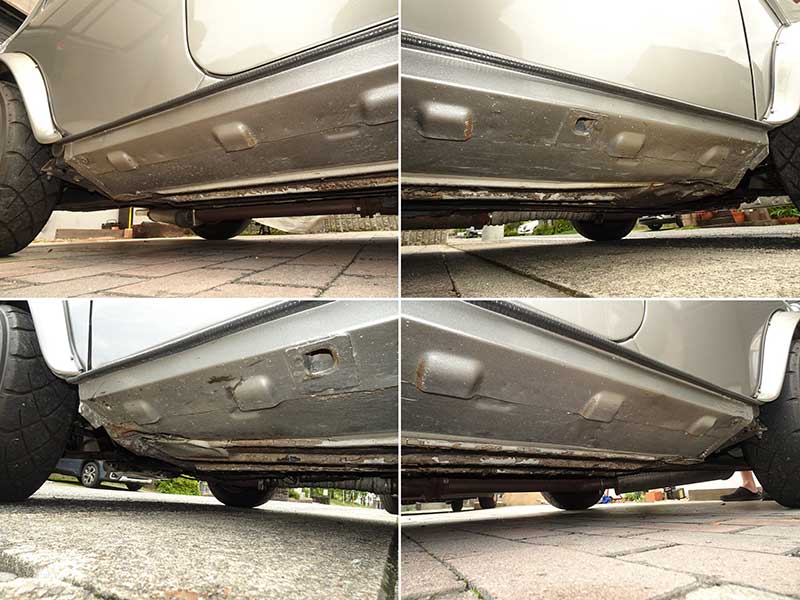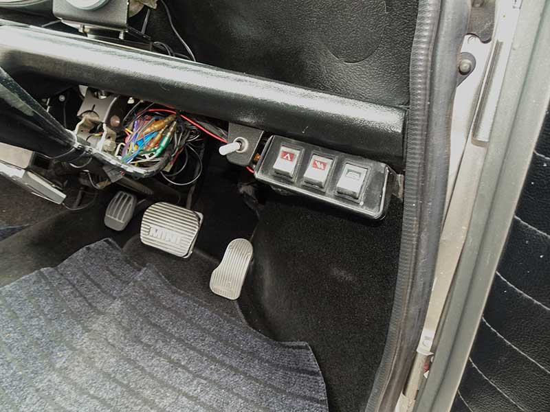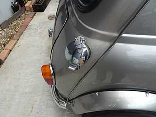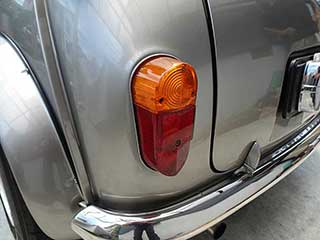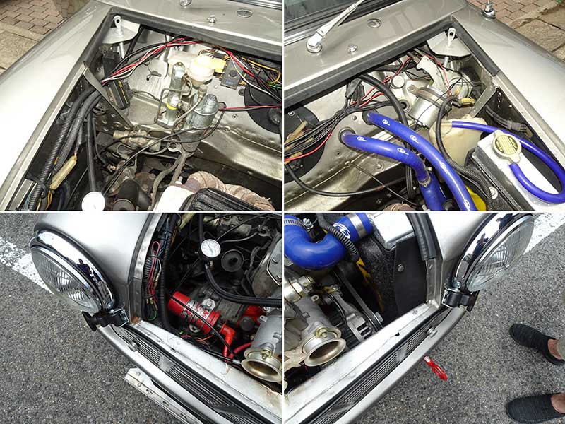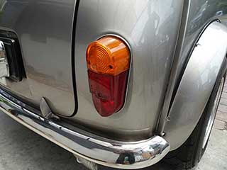 ボディ同色のオーバーフェンダー、クリアレンズのターンシグナルライト、P700のヘッドライト、丸型ドアミラー、バンタイプのフロントグリル、フロントバンパーレス、マーク1テールライトなど、カスタム内容が満載です。