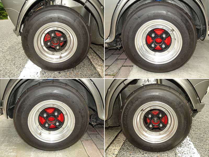 アルミホイールは10インチのスピードスター、タイヤサイズは165/70R10、アドバンのスポーツタイヤを履いています。