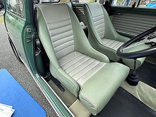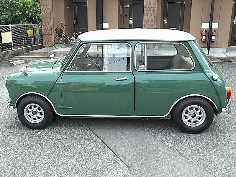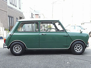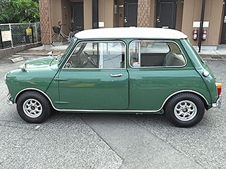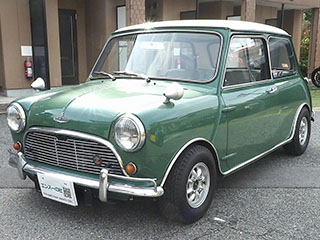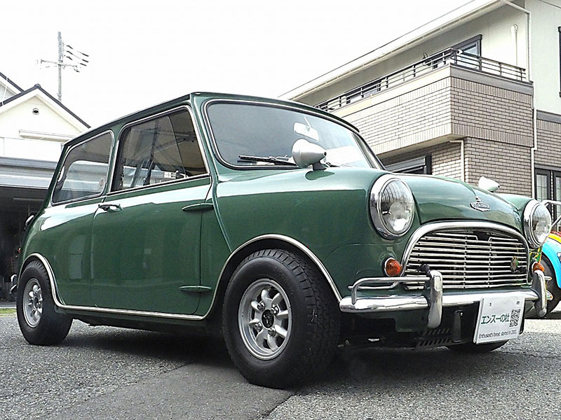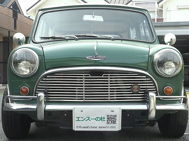 フロントビュー、人目でMINIとわかる愛嬌あるフロントマスクです。VANのワッペンがいいアクセントになっています。フロントのオーナメントは”AUSTIN COOPER S”です。 |